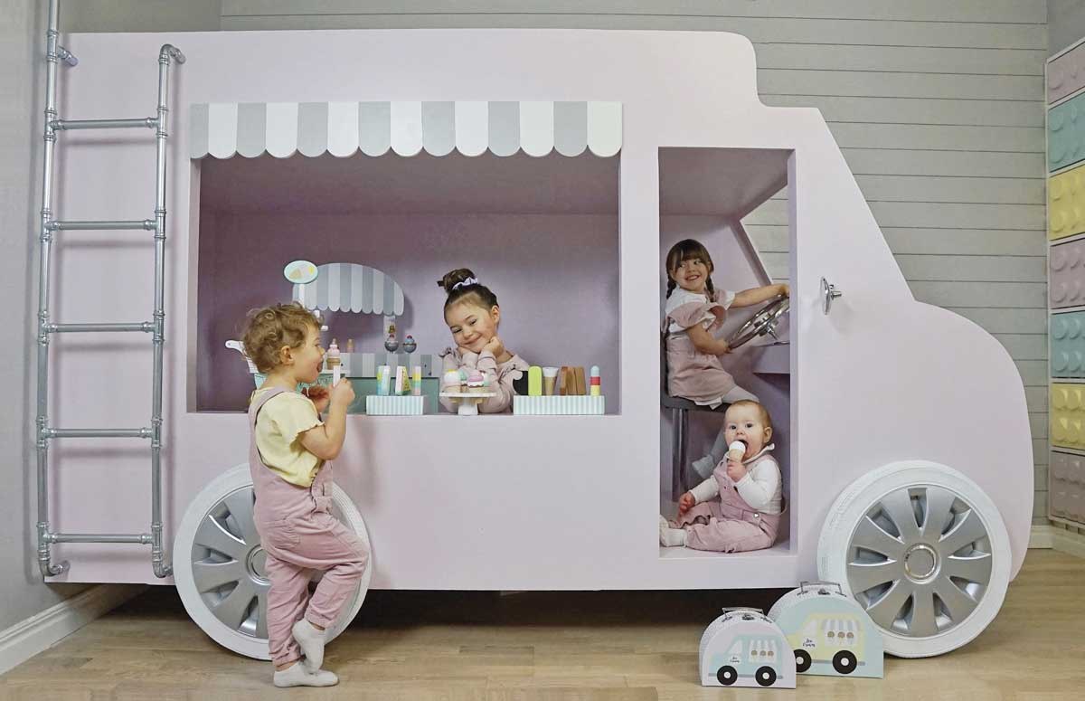 A loja Playroom dispõe de um espaço interior com terraço para criar pequenas festas de aniversário.