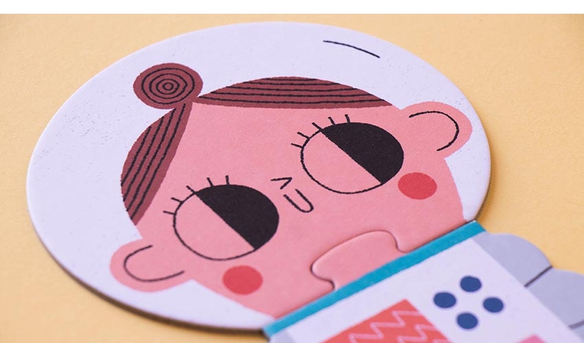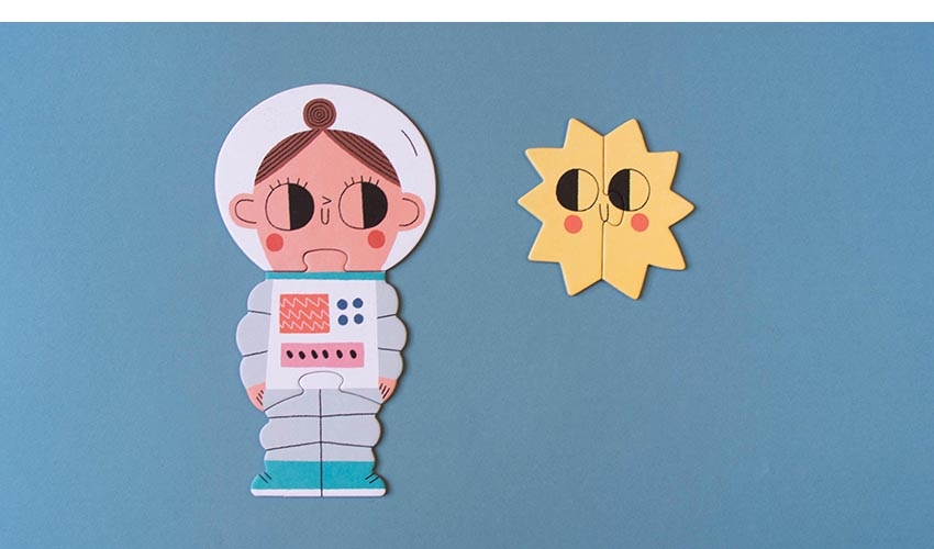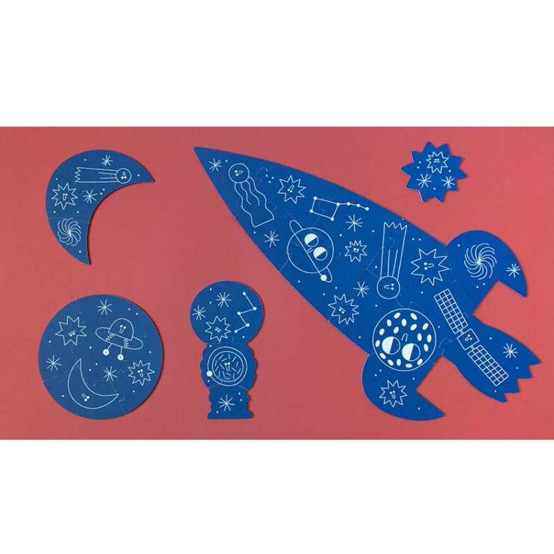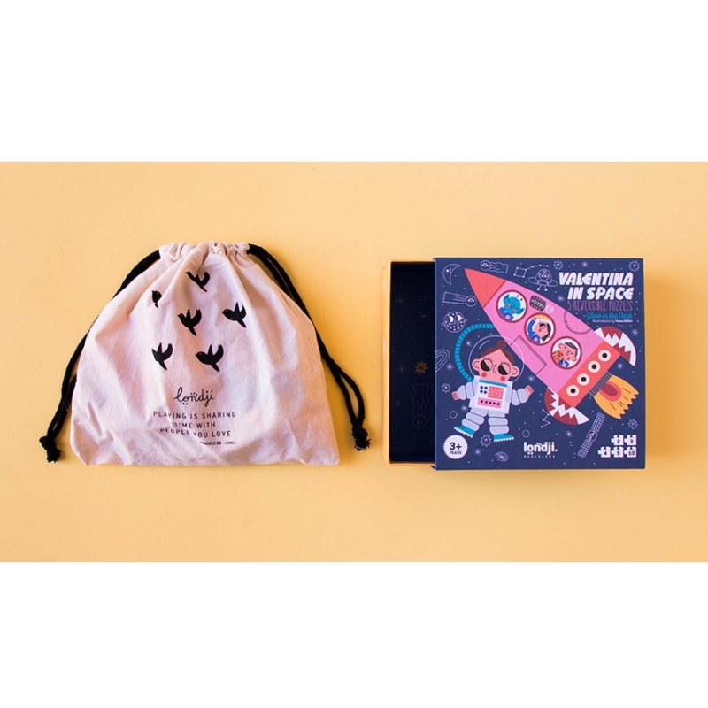 Puzzle "Valentina in Space" 22,90 € Desconto de %. IVA incluído. Partilhar Comprar Contactar SKU: PZ008U Viaje com a Valentina e com os seus amigos pelo espaço e descubra algumas das maravilhas do nosso sistema solar: a Terra, a lua e as estrelas! 5 puzzles reversíveis de 2, 3, 4, 5 e 10 peças com uma surpresa, quando montados brilham no escuro! Ilustração de Teresa BellónIdade 3+Material Papel FSC e papelão reciclado